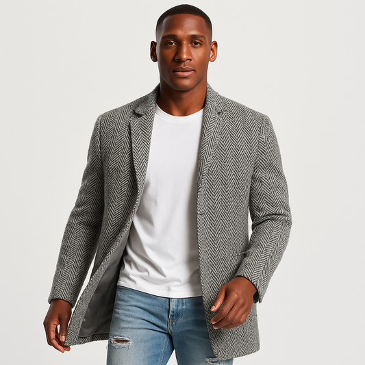 Refined Men's Herringbone Overcoat for Versatile Wear